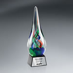 Art Glass Award On Glass Base w/ Plate